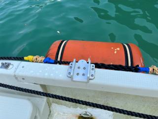 ◆左舷前の綱とりはステンレス製です、後方には左右にステンレスの綱取があります。
