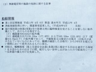 ※この船を現地から航行区域外の港に航行するには「新規登録」や「臨時航行区域変更」などの手続きが必要になると思われます。こちらも有償にはなりますが当方で申請や検査の立会いなどを承りますので必要でございましたらお問い合わせ下さい。