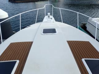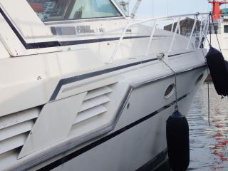 ご紹介の艇は1990年式(平成2年式)のトロージャン12mエクスプレス(40フィート)です。年数は経過して来ていますので、所々と手直しが必要になりますが、広々としたデッキ周りと広々と使いやすい空間のキャビンで、波切りの良いハルデザインなどに大きな魅力を感じる艇です。遊び心と居住性を両立させたボートですので、自分なりにリメイクやサイズアップで船をお探しの方はとてもご興味を持たれるのではないかと思います。