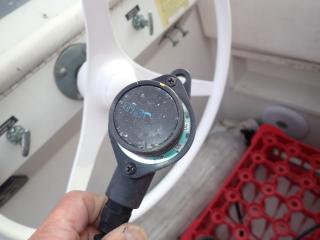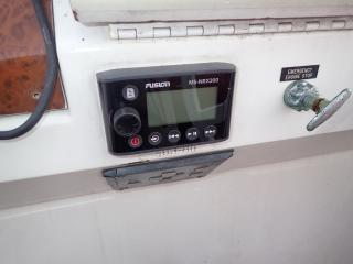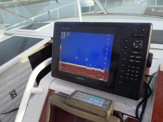 操船席にはコンパス、ステレオ(FUSION)、GPS(ガーミンAQUAMAP100XS)GPS魚探(YAMAHA YFV10GP9)、レーダー(FURUNO)、舵リモコン、サーチライト、トリムタブコントロール等が装備されています。