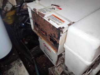・発電機の定期整備(消耗品交換)と熱交換器ガスケット交換、ラジエーターキャップ交換、エキゾーストマニホールド(中古品)交換