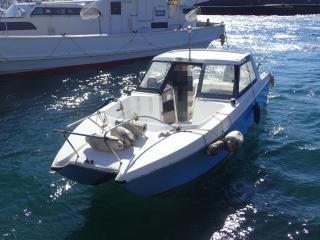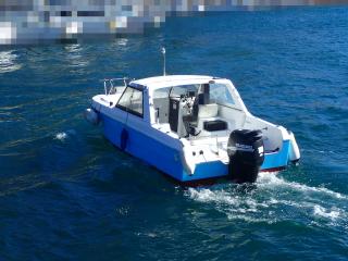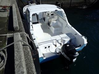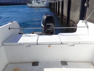 ご紹介の船はニッサンサンキャット700THTです。1987年進水37年経過していますがカタマラン(双胴船)の人気船です。横揺れに強く流し釣りにも最適です。搭載していますエンジンはスズキの4スト140馬力です。こちらの船は、主に教習艇として使用していました。デッキが広く作業性も良いので、ご興味を持たれる方が多いかと思います。