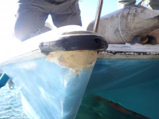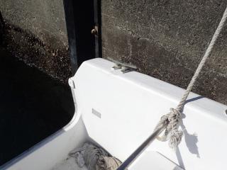 〇後進をすると船尾側ハル内側のデッキ排水口から海水が逆流してくる様で、逆流しないように弁の部品が取れて付いていないようです。