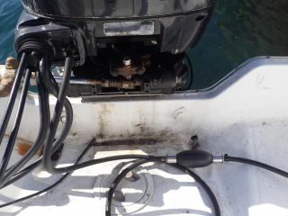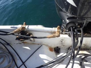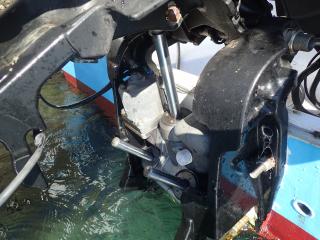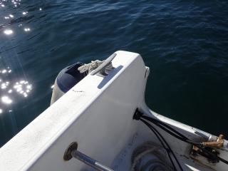 〇船外機のシフトレバは、シフトの部分を握るとシフト切替のロックが解除されるのですが、ロックの解除をしてありますので、前進・後進が引っ掛かりもなくシフトが動いてしまいます。