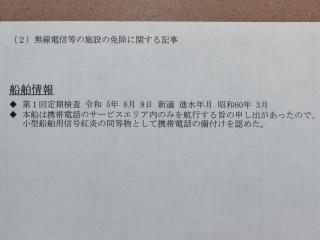 ◆航行区域はおそらくですが5海里限定になっていると思われます。また、これも推測ですが、限定解除すれば(要検査)限定沿海15~20海里は取得できると思われます。※当方の推測なので保証するものではございません。