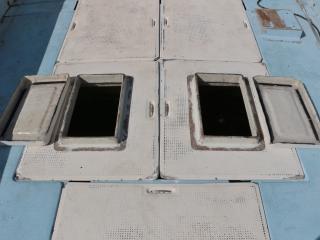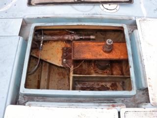 ◆燃料は写真No.55とNo.56に写っている左右の燃料タンクの給油口から入れられます。なお、タンクはエンジンの両側にあり、総容量ははっきりしませんが、おそらく300L~400L程度ではないかと思われます。(あくまでも推測ですので保証するものではございません。ご参考まで。)