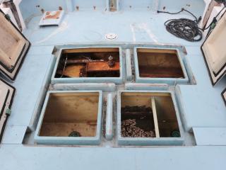 ◆実長が約11m、実幅が約2.8mの船体で、オーニング、イケスなどが装備されています。
