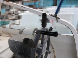 ◆この船のエンジンのマリンギアには微速装置が付いています。微速装置は写真No.20のリモコンで操作できます。