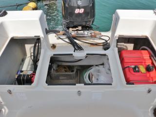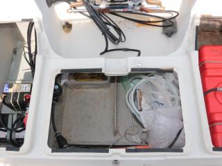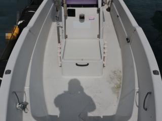 ◆センターコンソール前(船体中央付近)にイケスがあるので満水時の船体バランスも良さそうです。また、このイケスは椅子にもなりますので、便利そうです。