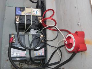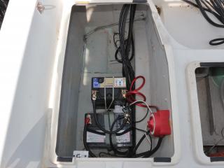 ◆アフトデッキ・トランサム側も良好です。アフトデッキのハッチは3つあり、右舷にはバッテリーが2つ備わっており、スイッチの切り替えにより始動電源の安全性が確保されています。