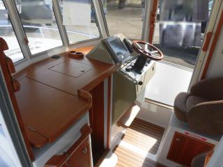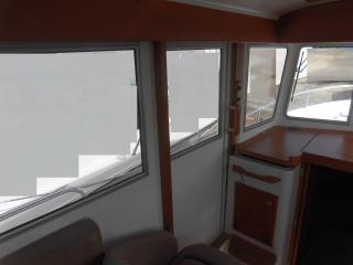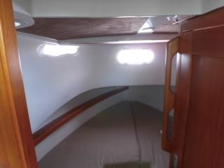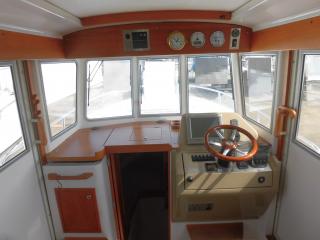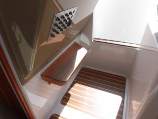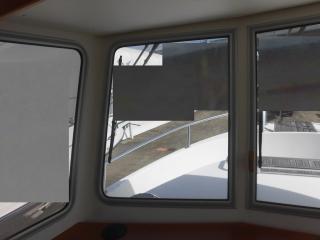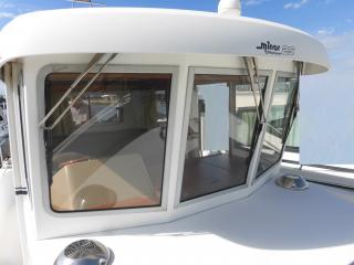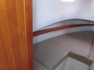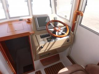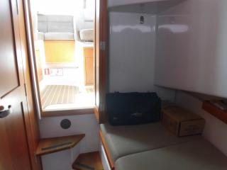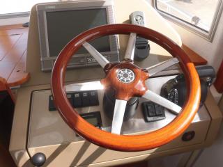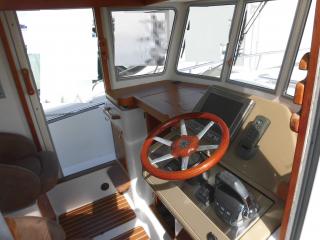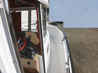 本国では業務艇でも使用されており機動性や乗り心地は25ftクラスとは思えないほど良好でキャビン内はふんだんにチークが使われており斬新なレイアウトで居住空間も広く快適で国内艇には無い感覚を感じました。
