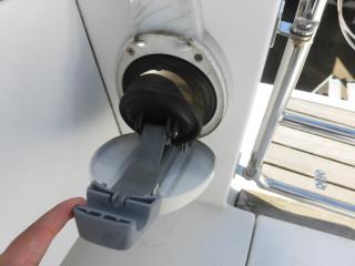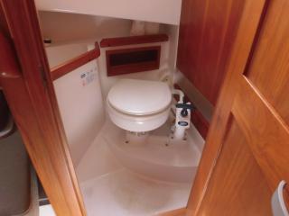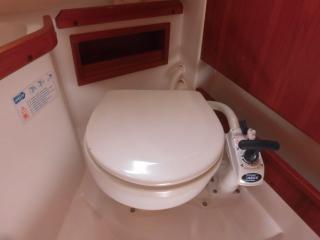 ハンドルの裏側には個室の手動マリントイレが有り清潔に保たれておりお子様や女性が乗船しても安心です。