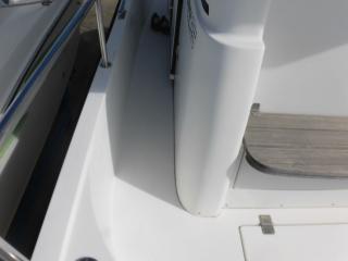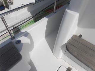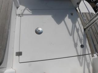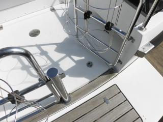 一体型のトランサムステップが有りスイミングラダーも有るので海面アプローチが楽でドライブやプロペラにトラブルが発生しても大型のステップハッチが有るので安心です。